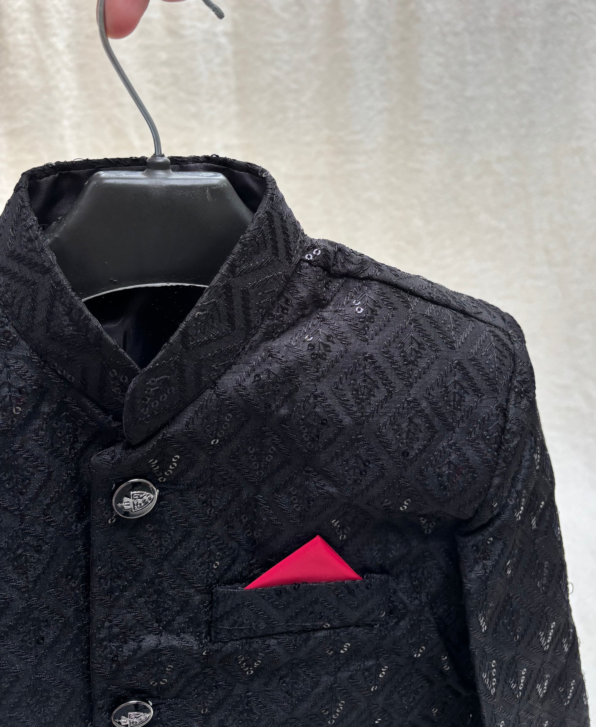 Black embroidered Prince Coat. A Style that makes a statement, perfect for all festive occasions by Eastern Buds.
