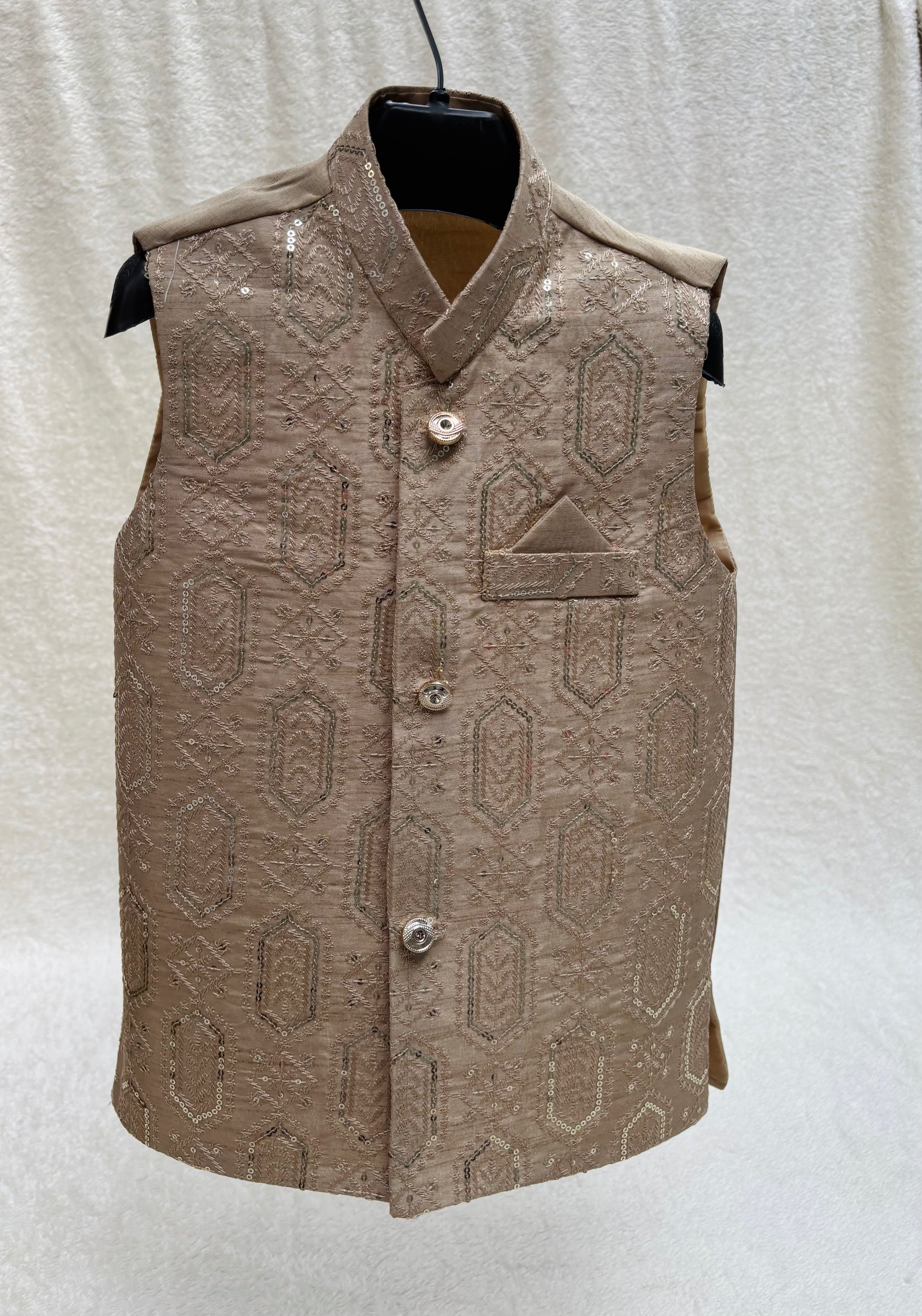 Beige Embroidered waistcoat for your little one by Eastern Buds, crafted for a regal ethnic look! Perfectly pairs with a kurta pajama, making it ideal for weddings, festives, and special occasions.