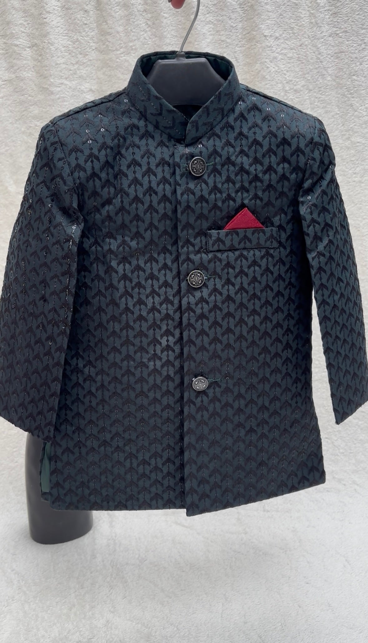 Elegant and timeless, Eastern Buds Emerald Green embroidered Sherwani for little boys blends tradition with modern style. Designed for versatility, it can be paired with any kurta pajama or even a t-shirt and pants for a stylish yet comfortable look. Perfect for any special occasion!