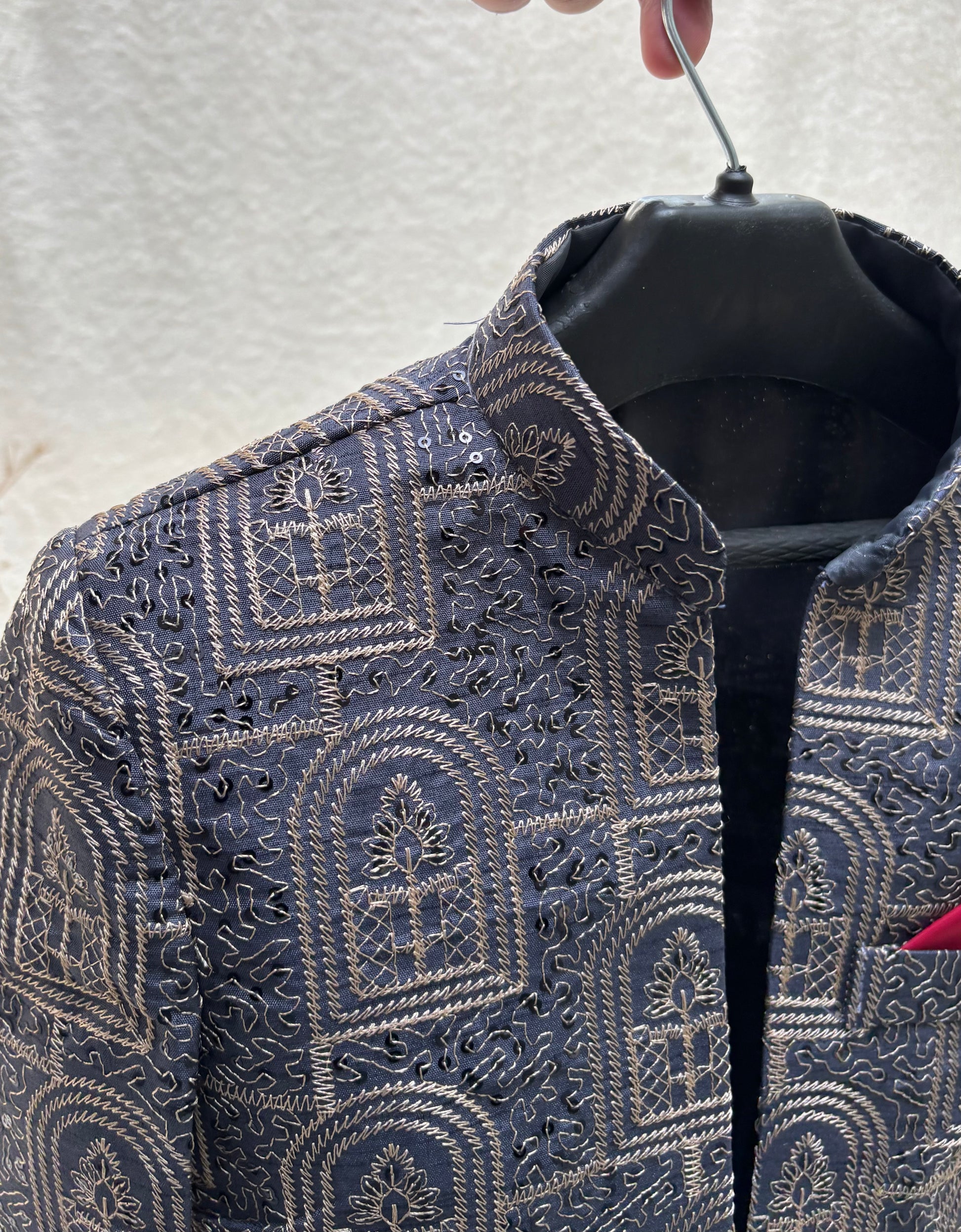 Gray colour with beige thread Front open embroidered Prince Coat. A style that makes a statement, perfect for all festive occasions by Eastern Buds. Can be paired with any kurta pajama.