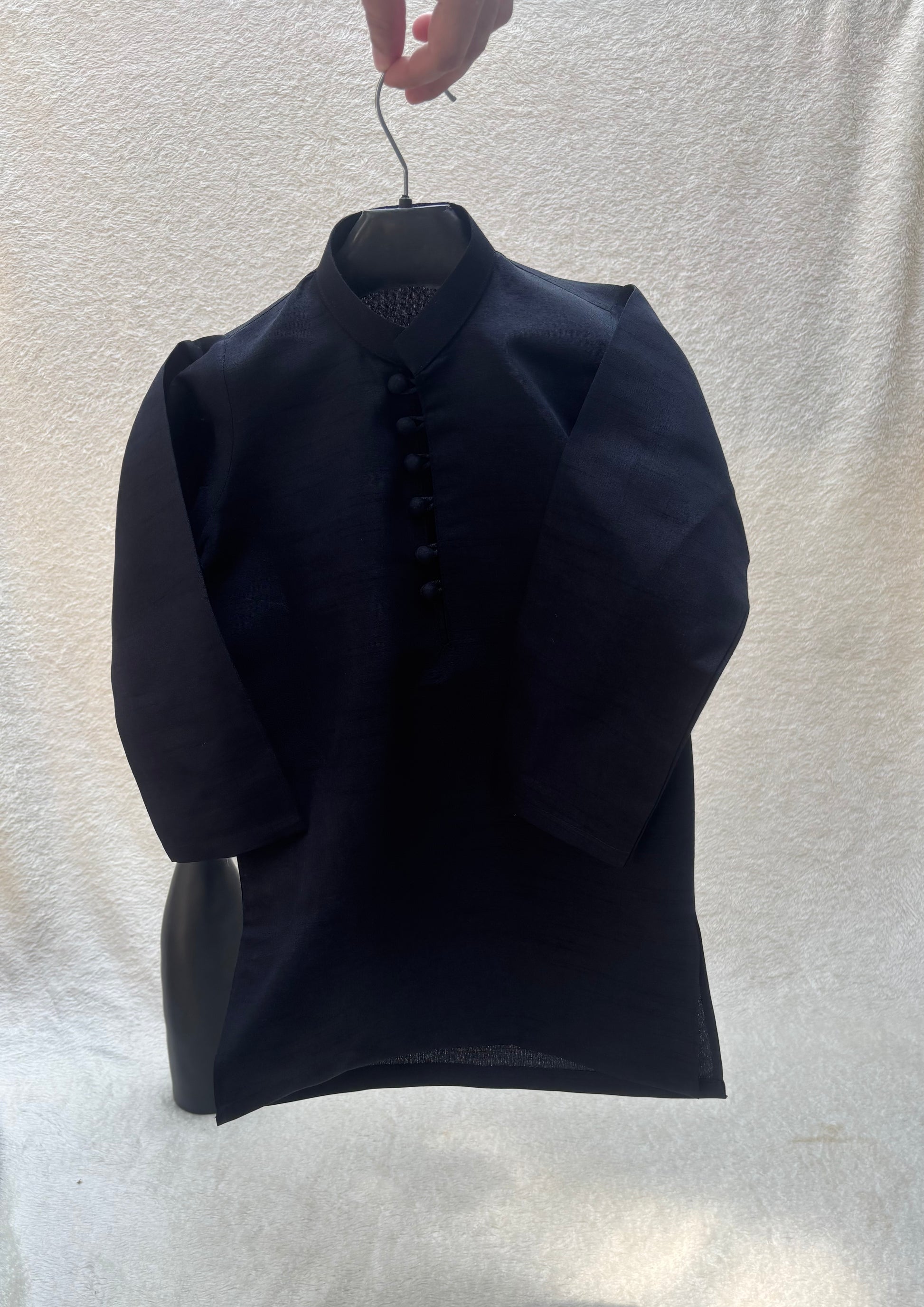 Green Self Textured Front Open sherwani paired with a matching raw silk kurta pajama. The perfect outfit for all festive occasions by Eastern Buds.