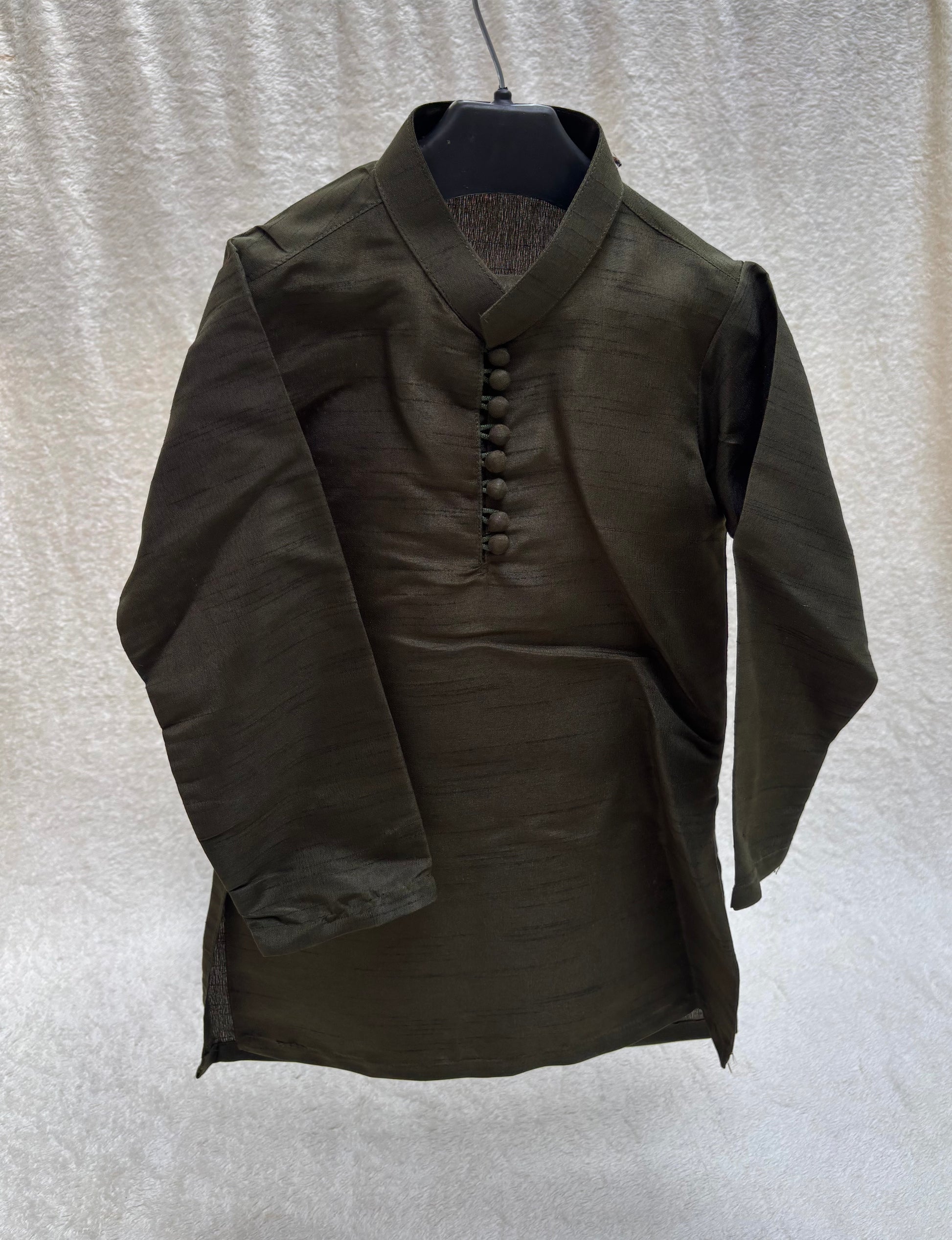 Mehandi Green embroidered sherwani paired with a matching raw silk kurta pajama. The perfect outfit for all festive occasions by Eastern Buds.
