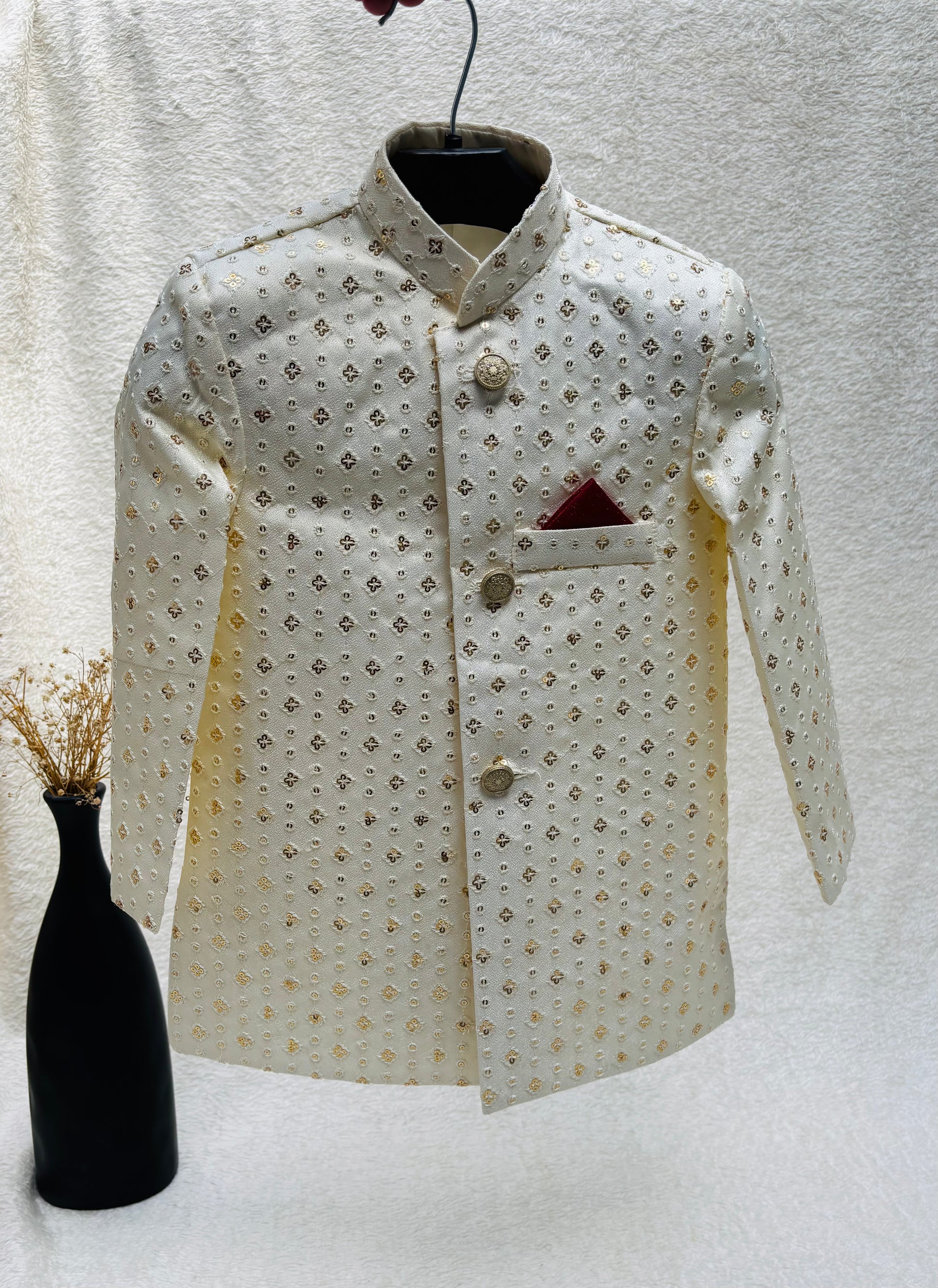 Elegant and timeless, Eastern Buds Black embroidered Sherwani for little boys blends tradition with modern style. Designed for versatility, it can be paired with any kurta pajama or even a t-shirt and pants for a stylish yet comfortable look. Perfect for any special occasion!